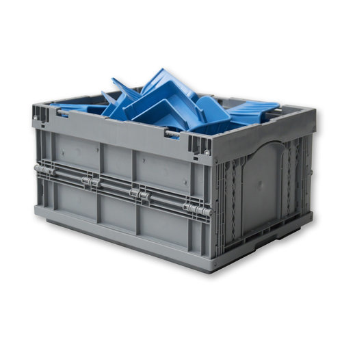 Caja plástico plegable con distintas configuraciones de medida. Revisa las variaciones para ver pesos y dimensiones.