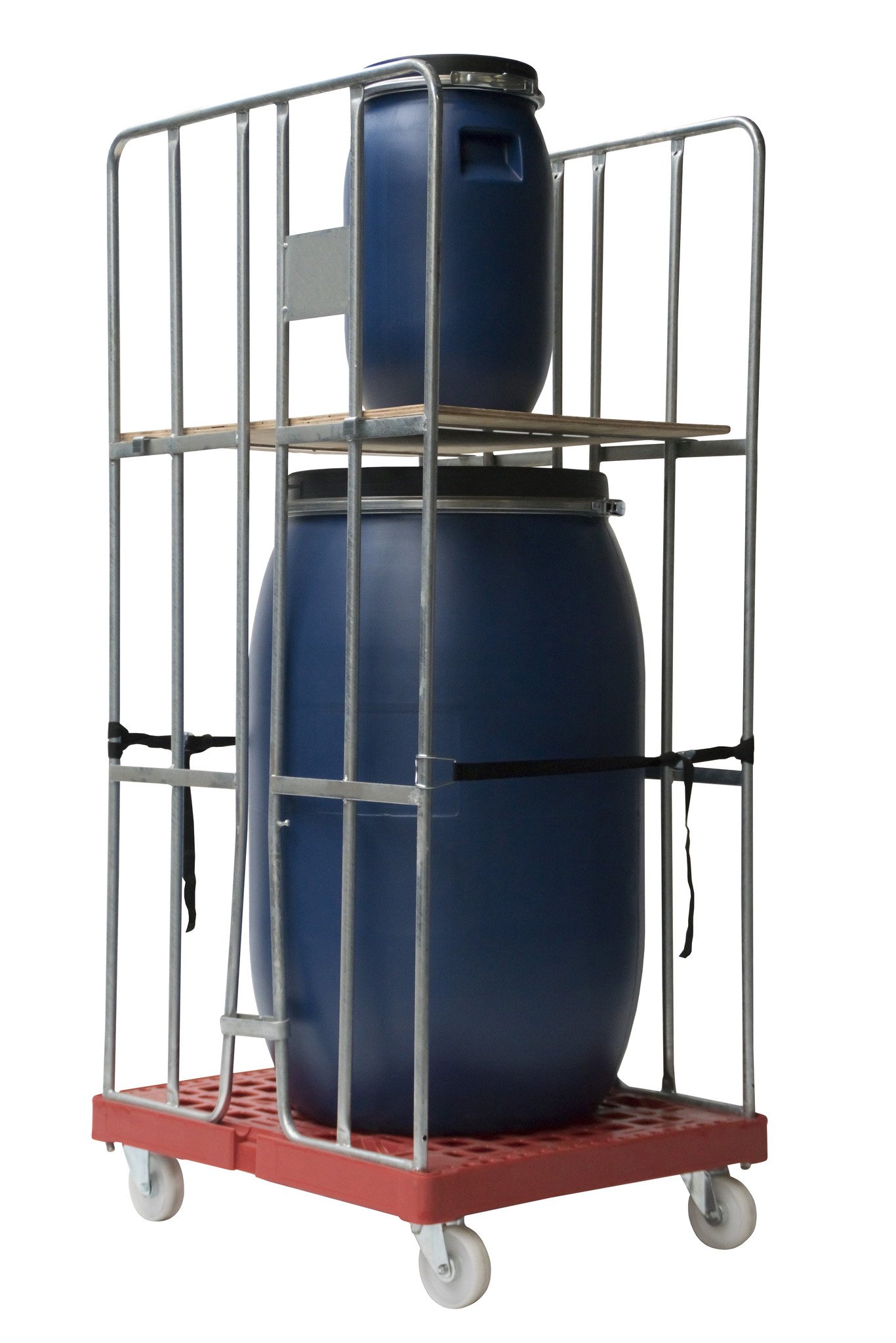 Roll container de 2 laterales con una capacidad de carga máxima de 500 kg. El roll container tiene una base de plástico y laterales que están galvanizados térmicamente para evitar la corrosión