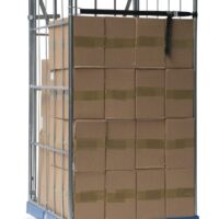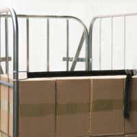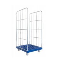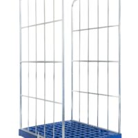 Roll container de 2 laterales encajable y una capacidad de carga máxima de hasta 500 kg. El roll container tiene una base de plástico y rieles laterales zincados para evitar la corrosión