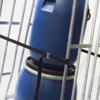 Roll container de fabricado con malla metálica y acero galvanizado. Equipado con 2 ruedas fijas y 2 giratorias, banda de rodadura de PP, base de rodillos de metal y 2 rieles de clip en el lado corto y las aberturas en el lado largo