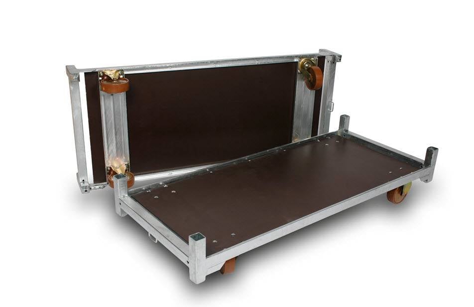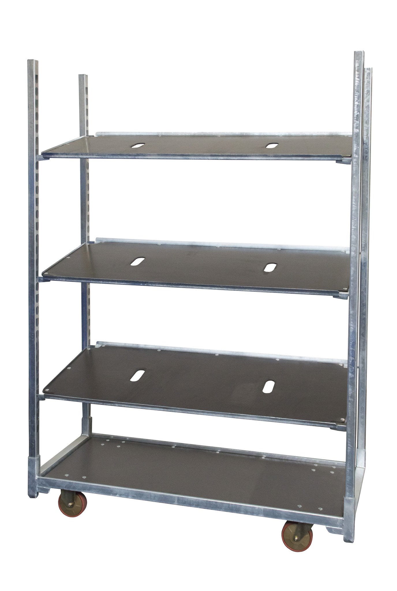 En RASMIA tenemos la capacidad y la flexibilidad para satisfacer tus necesidades específicas en relación a los carros daneses y otros transportadores de carga de nuestra amplia gama. Se suministran tres estantes con el carro danés estándar. Los estantes adicionales del carro de flores para crear aún más superficie de carga, por supuesto, también están disponibles por separado. Los estantes están hechos de madera contrachapada impermeable y pueden soportar hasta 50 kg cada uno. Más que suficiente para la mayoría de las aplicaciones. Se pueden colocar a diferentes alturas e incluso en diagonal en los montantes para fines de exhibición. ¿No necesitas tu carrito danés por un tiempo? El conjunto se puede desmontar y almacenar de forma compacta durante el transporte o en el almacenamiento fuera de las horas punta.