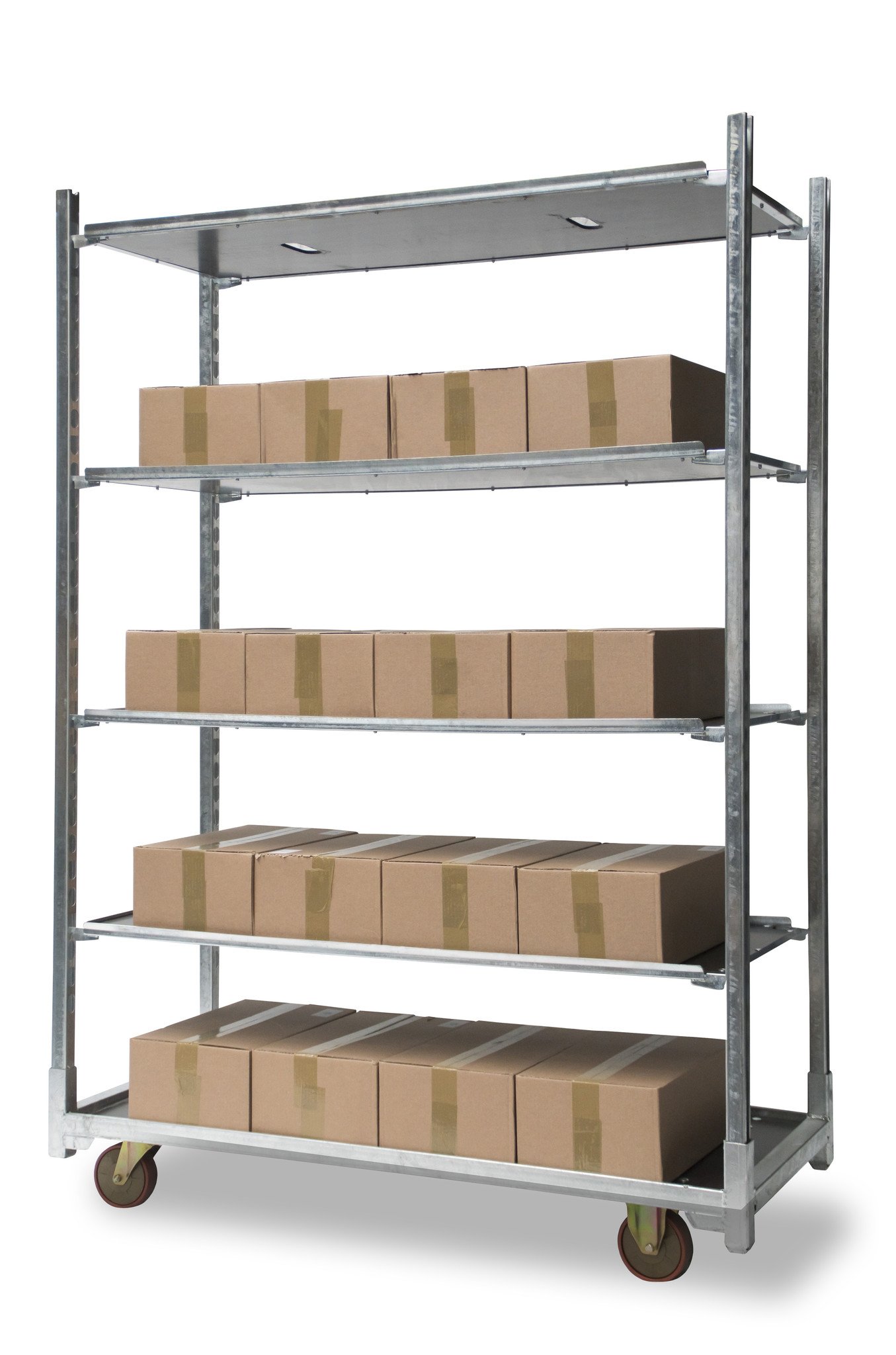 El carro danés también se llama carro de flores, carro de plantas, carro de subasta o contenedor CC y está diseñado para la horticultura. Sin embargo, el carro danés es extremadamente versátil. Puedes ver diferentes ejemplos todos los días en supermercados, floristerías y ferreterías, donde los productos se muestran directamente en la tienda en el carrito. Es una solución muy práctica y rápida porque se puede entrar todo como uno después de la hora de cierre. Los carros daneses están equipados de serie con ruedas giratorias en un lado corto y son conocidos por su fácil manipulación. Esto los hace adecuados para la preparación de pedidos.