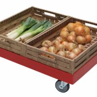 Dolly de plástico con una rejilla cerrada adecuada para su uso en entornos higiénicos y cumple con las normativas HACCP. Compatible con nuestros contenedores y cajas Euronorm.