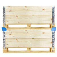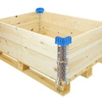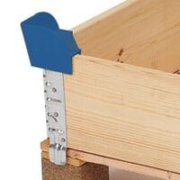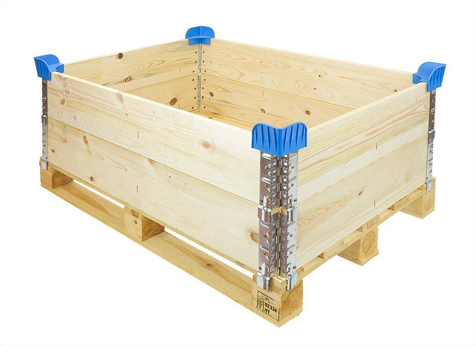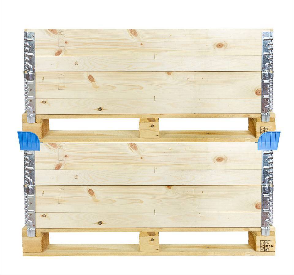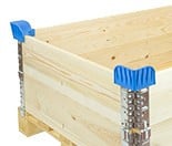 Práctico soporte de plástico para bordes superiores de los palets. Los bordes superiores y los palets se pueden apilar mediante estas esquineras. Es una forma barata y eficiente de ahorrar espacio. En color azul