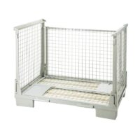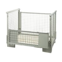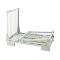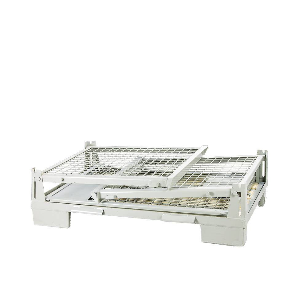 GIBO plegable usado con 2 laterales plegables en un lado largo. Con recubrimiento en polvo RAL 7030. Al ser apilable y plegable, permite ahorrar en transporte y almacenamiento