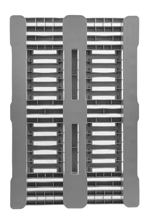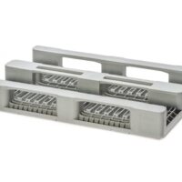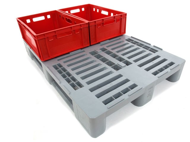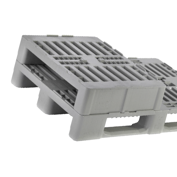 Un palet fabricado con plástico HDPE de alta calidad. Este palet tiene una plataforma abierta con borde elevado. Este borde elevado asegura que los contenedores de plástico no se salgan de la plataforma.