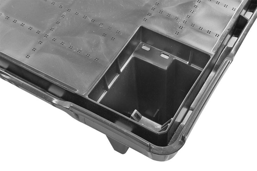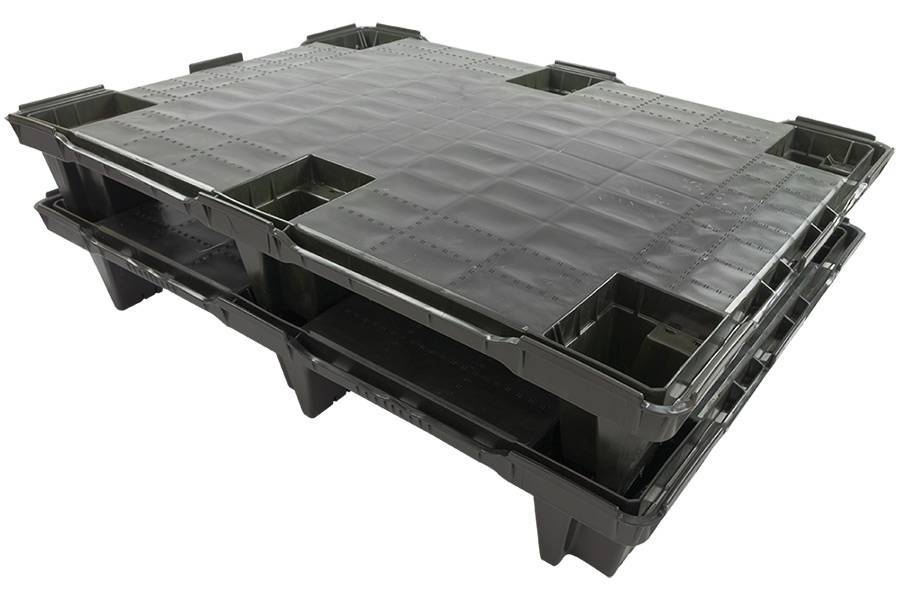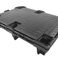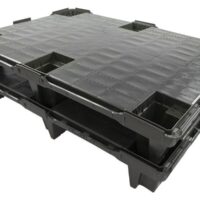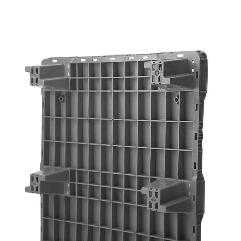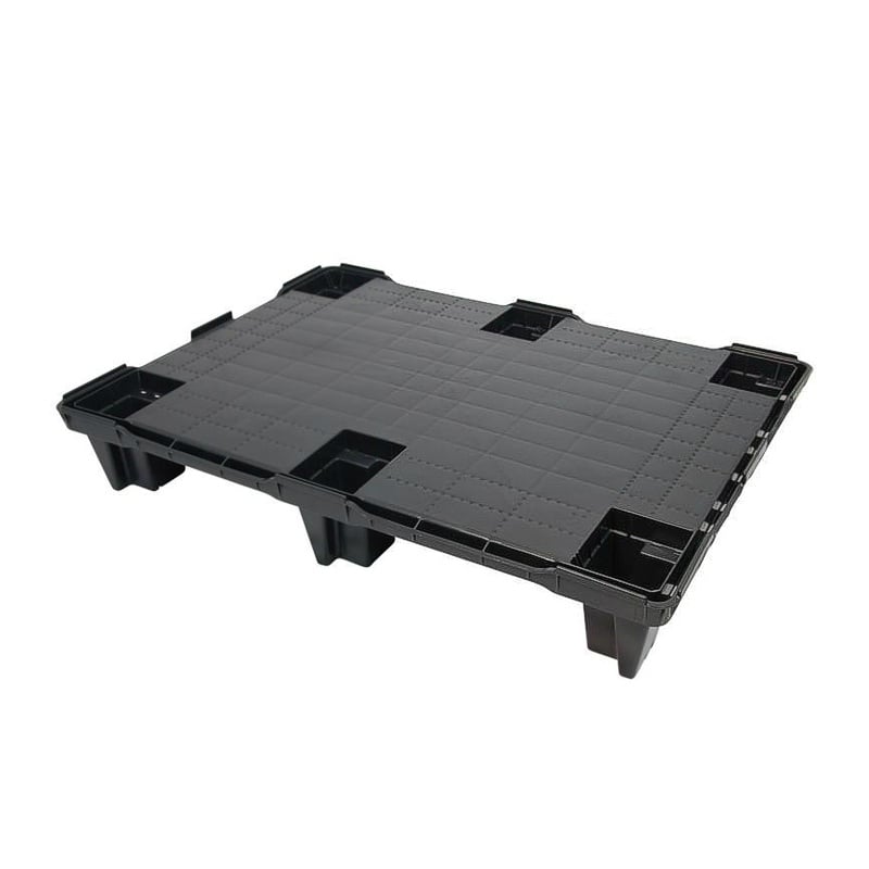 Palet de plástico de expositor con dimensiones y platadorma cerrada. Adecuado para transportar productos relativamente ligeros en varios tamaños porque la plataforma cerrada garantiza que no caigan cajas pequeñas