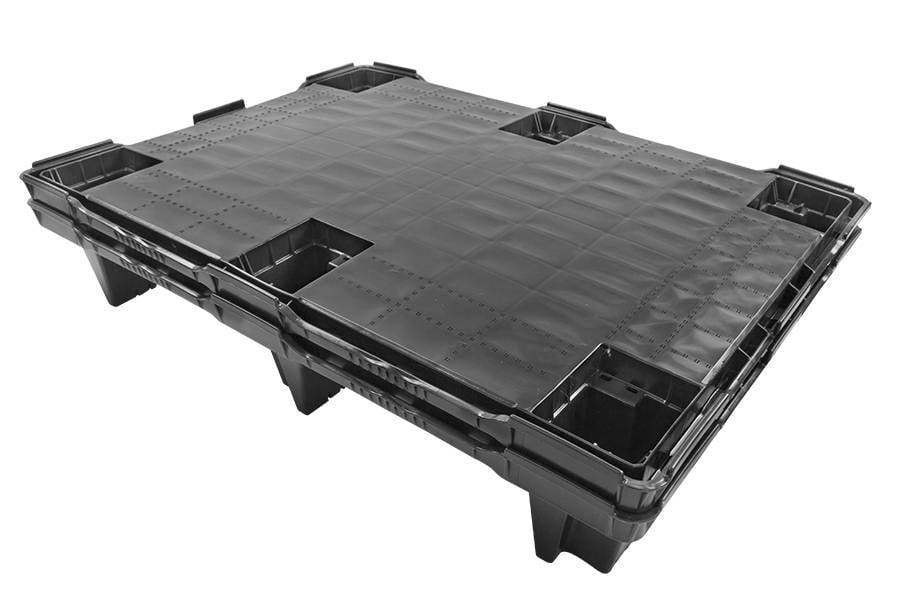 Palet plástico ESD 1200x800x145 mm, plataforma abierta, 3 patines, 1300 kg