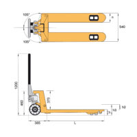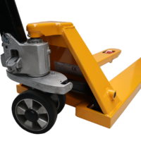 Transpaleta con una capacidad máxima de elevación de 3000 kg. La longitud de las horquillas es de 1150 mm y la anchura del carro es de 550 mm. La carretilla para palets está equipada con neumáticos de PU